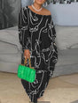 Plus Size Graphic Print One Off Shoulder Maxi - Black / 5XL / VIP Price is backordered and will ship as soon as it is back in stock.
