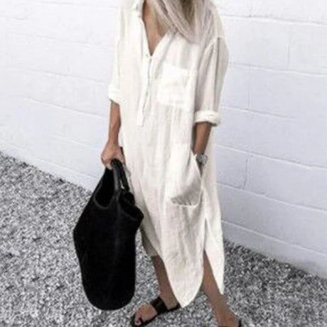 Plus Size Cotton Linen Long Dress for Women