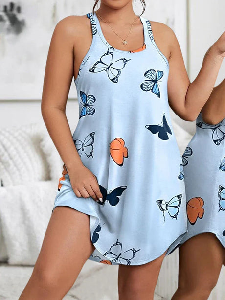 Plus Size Casual Nightdress Womens Plus Leopard Butterfly