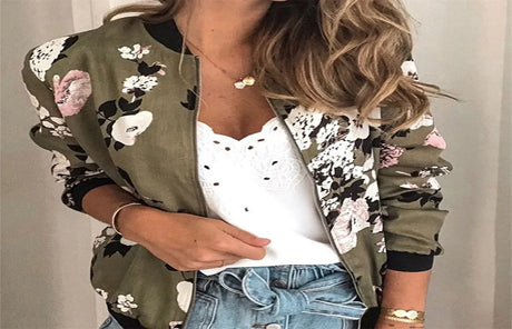 Casual Floral Printed Plus Size Bomber Jacket Autumn