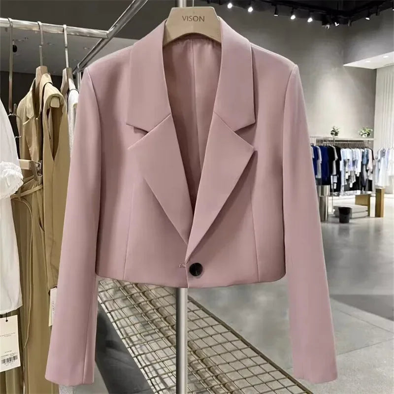 Suit Jacket Women Short Blazer Solid Long Sleeve