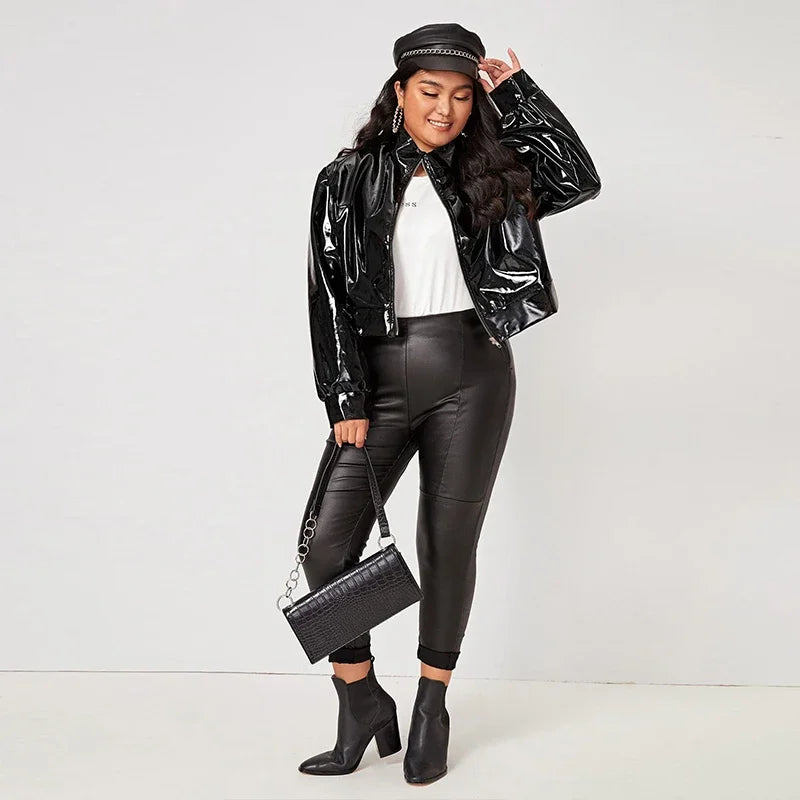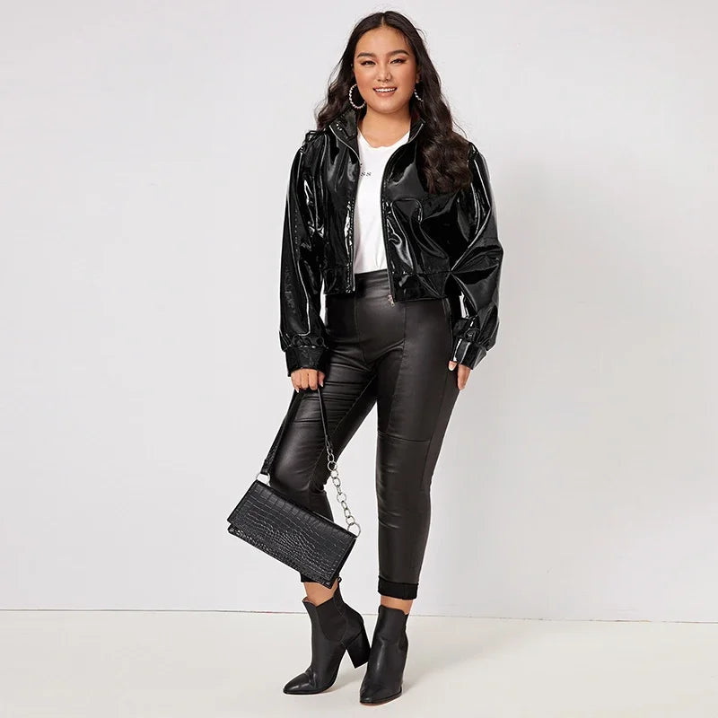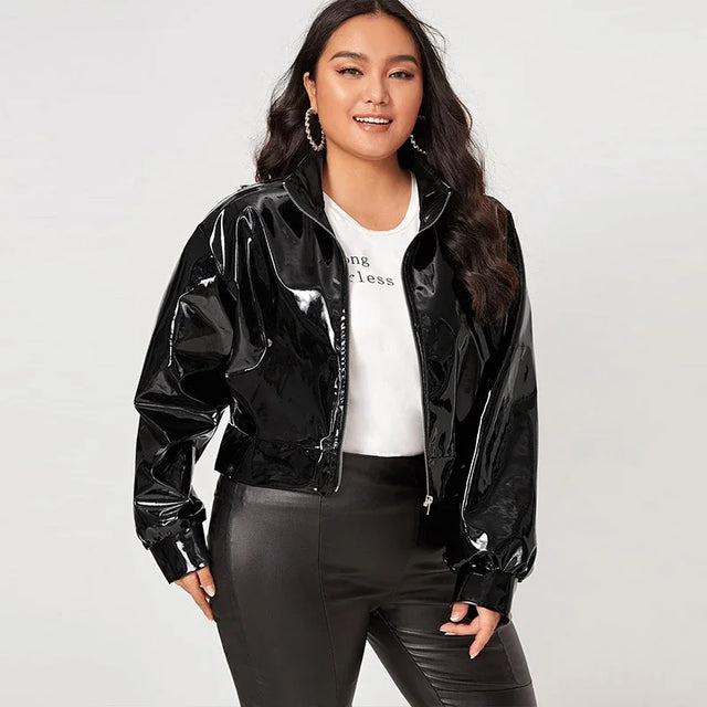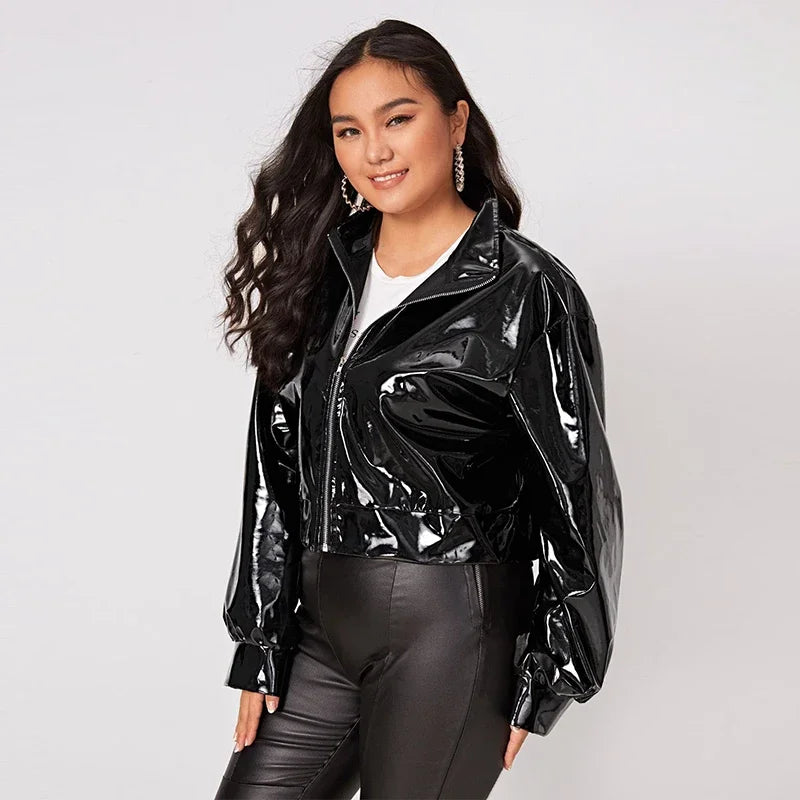 Zip Up Patent Leather Jacket for Women Long - black / L / VIP Price is backordered and will ship as soon as it is back in stock.