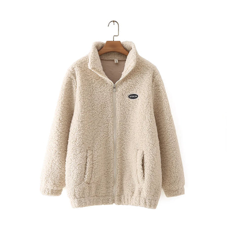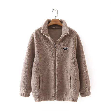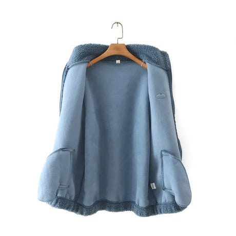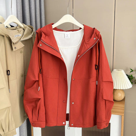 Washed Cotton Solid Color Zipper Hooded Jacket Womens