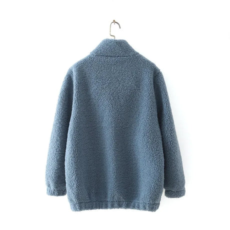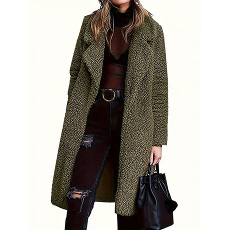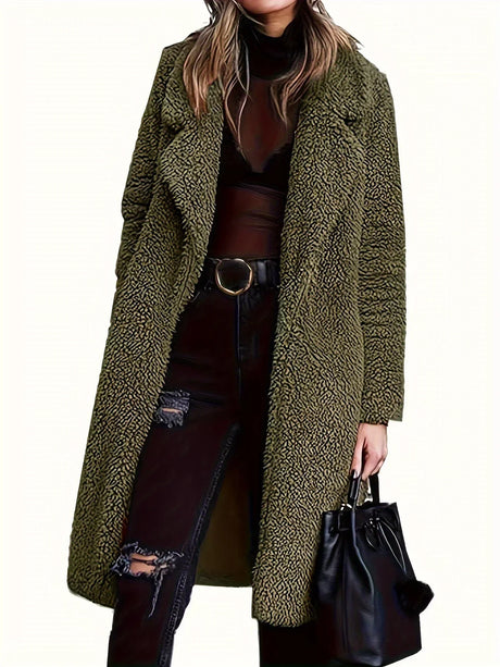 Plus Size Womens Fuzzy Fleece Lapel Open Front