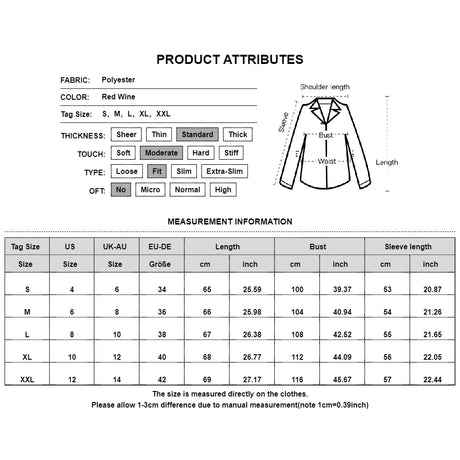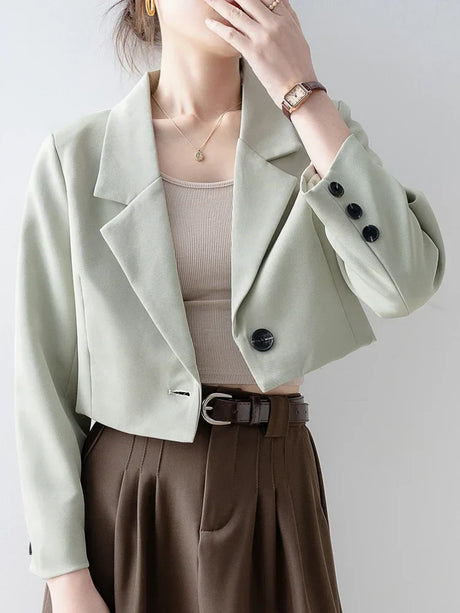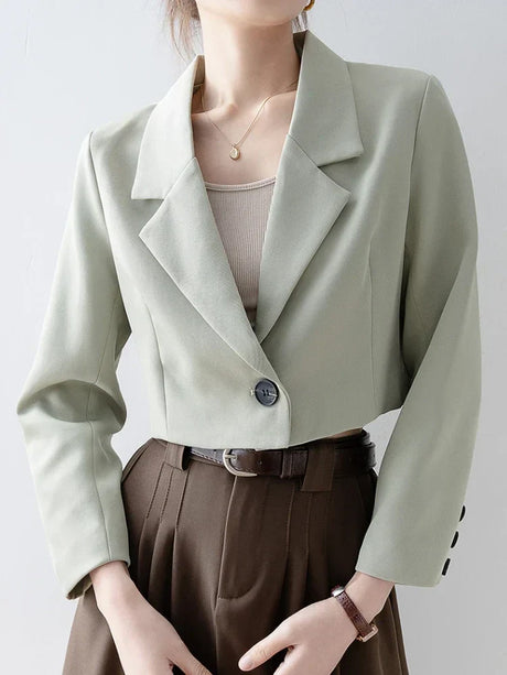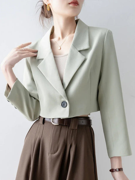 Suit Jacket Women Short Blazer Solid Long Sleeve