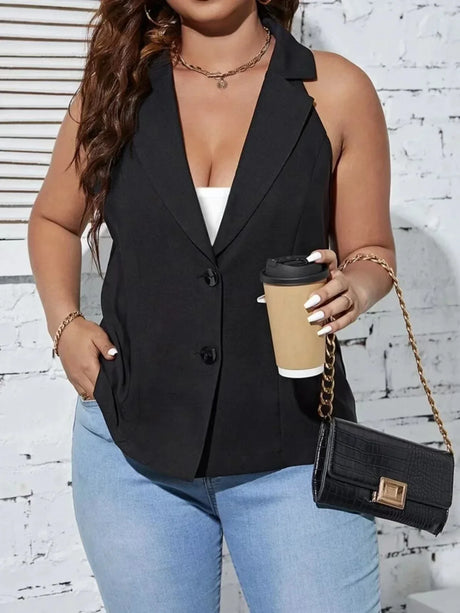 Plus Size Daily Outwear Black Mock Neck Asymmetrical