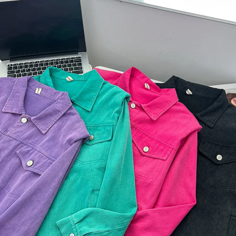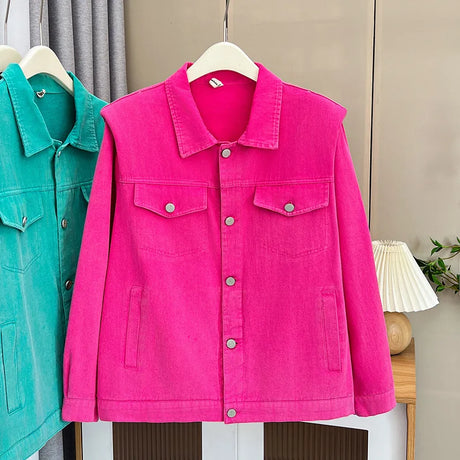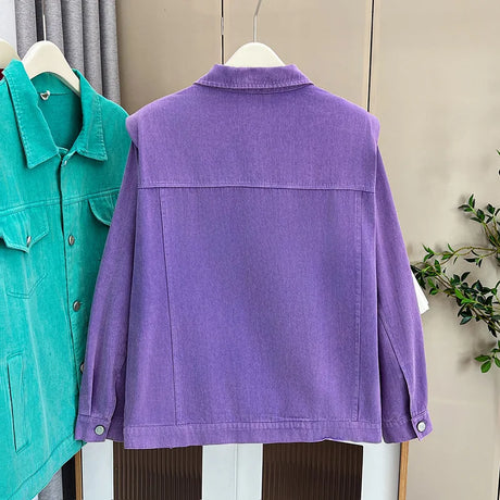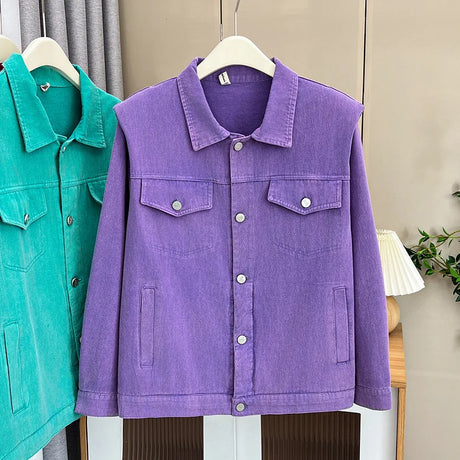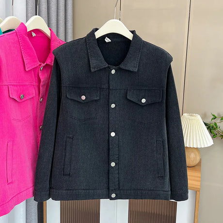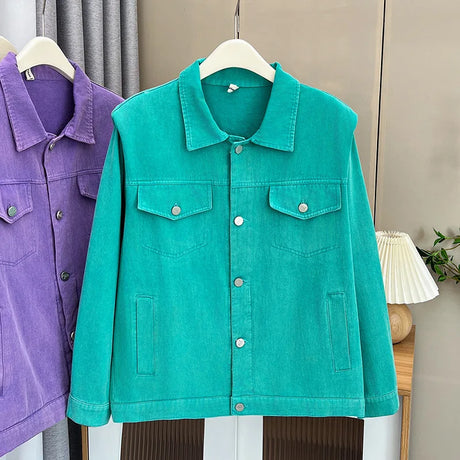 Womens Plus Size Washed Cotton Denim Jacket Autumn