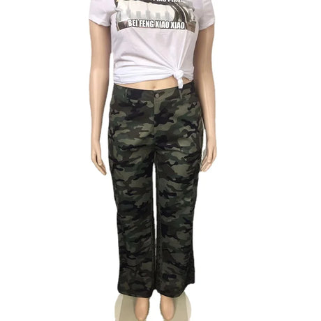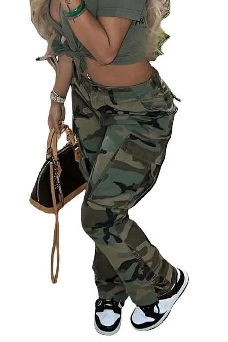 Perl Plus Size High Waist Camouflage Cargo Pants