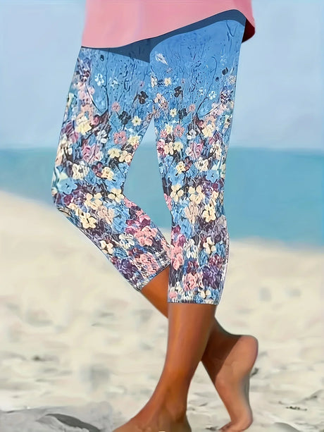 Plus Size Casual Capri Leggings Womens Plus Floral