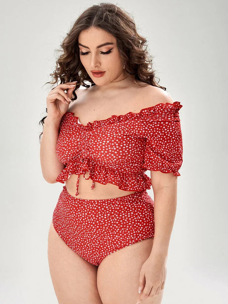Plus Size Wrinkled Bikini Two-Piece Swimwear (0XL-4XL)