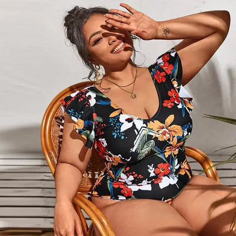 Women Plus Size Bikini Ruffle Printed Skirt Swimwears