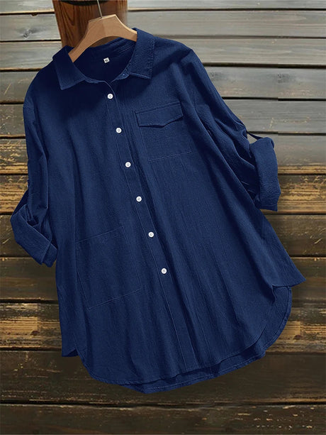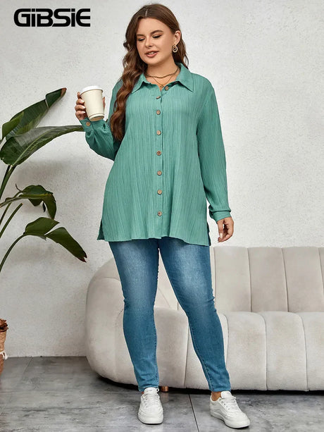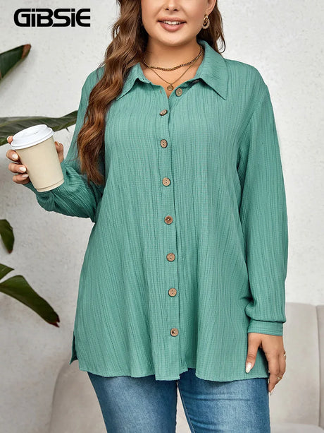 GIBSIE Plus Size Casual Solid Button Up Shirt