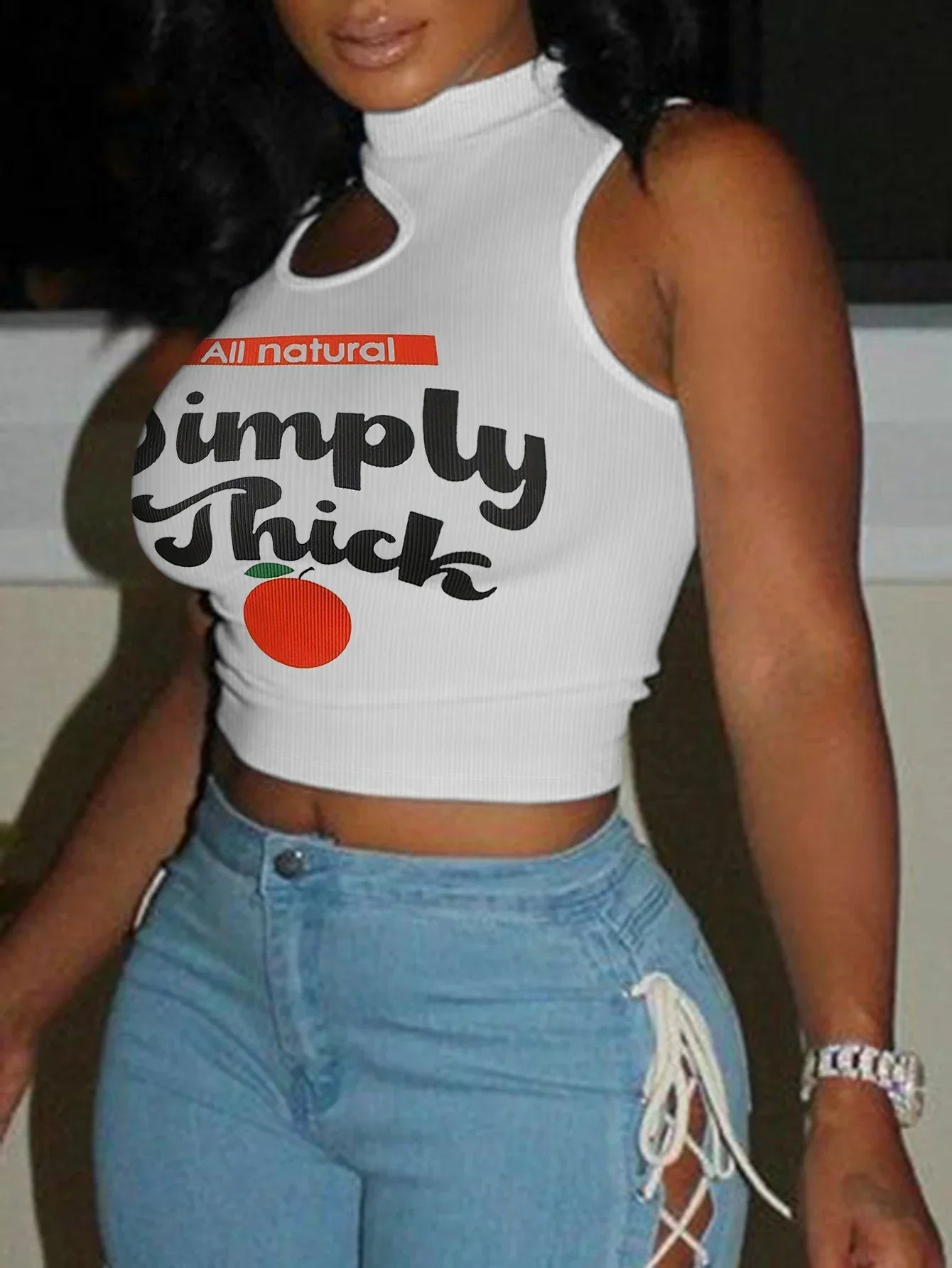 LW Plus Size Fruit Letter Print Rib Knot - WHITE / 4XL / VIP Price is backordered and will ship as soon as it is back in stock.