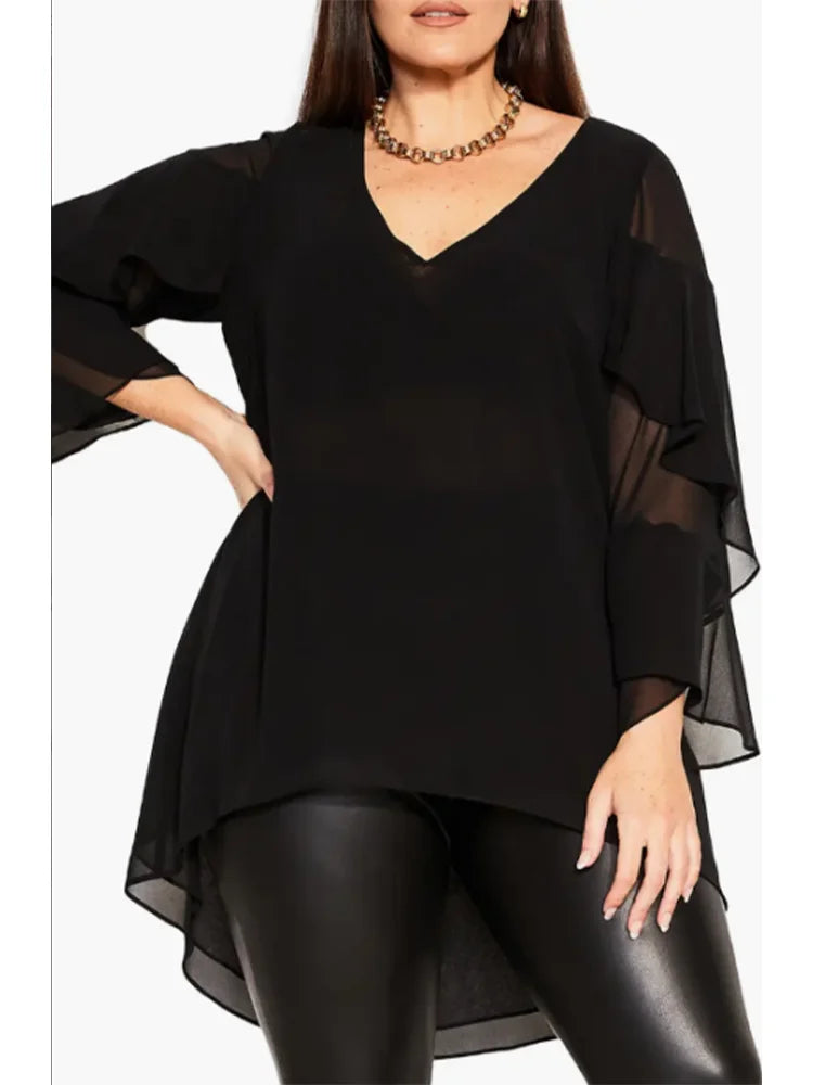 New Female Plus Size Casual Black Layered Ruffle - Black / 5XL / VIP Price is backordered and will ship as soon as it is back in stock.