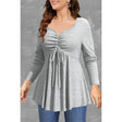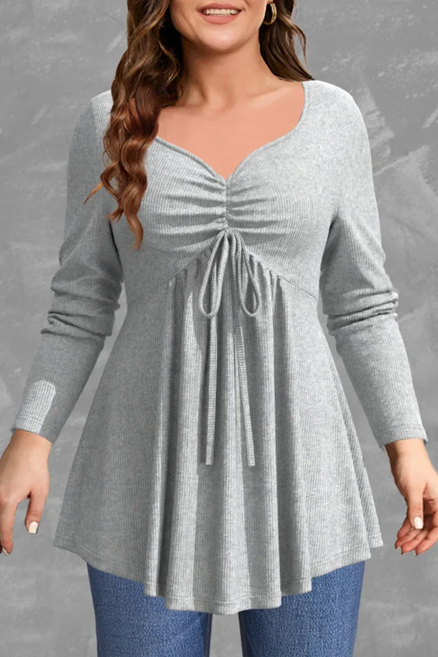 Plus Size Blouses Women Fashion Grey Rib Knit