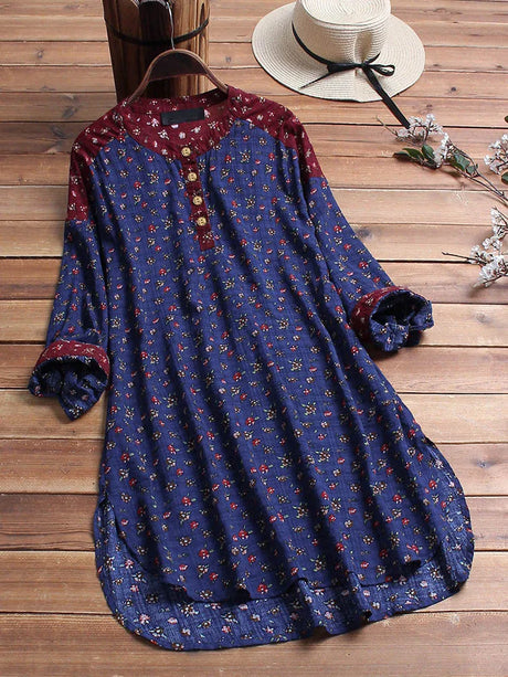 Plus Size Spring Summer Cotton Linen Printed Stand