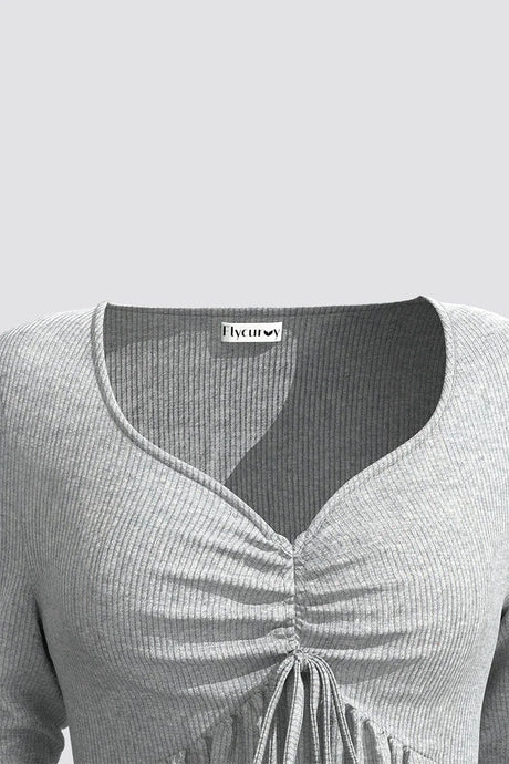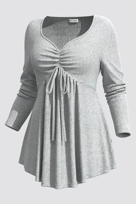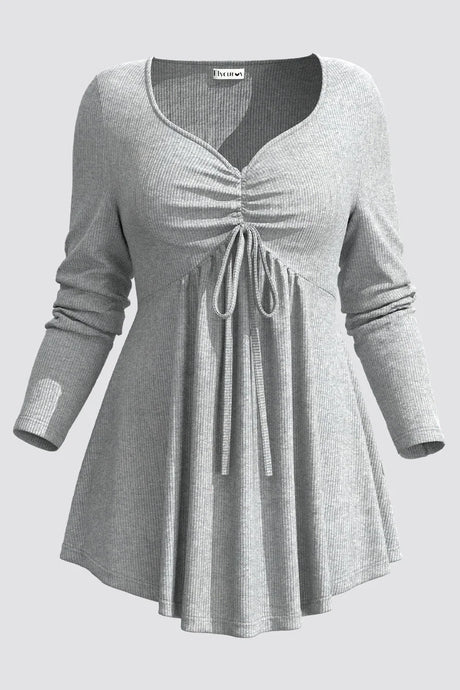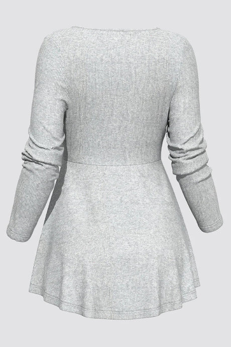 Plus Size Blouses Women Fashion Grey Rib Knit
