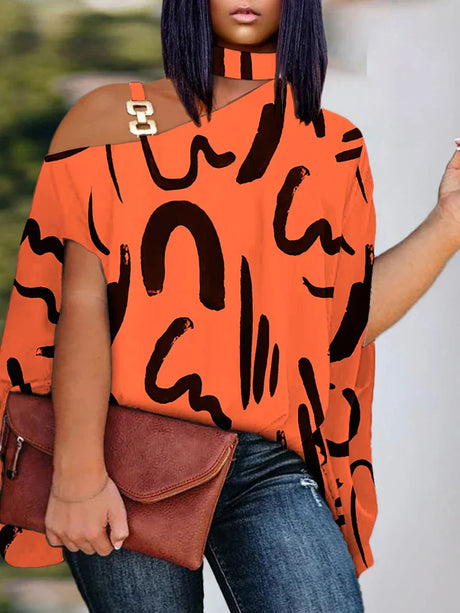 Plus Size Elegant Top Womens Plus Graffiti Print
