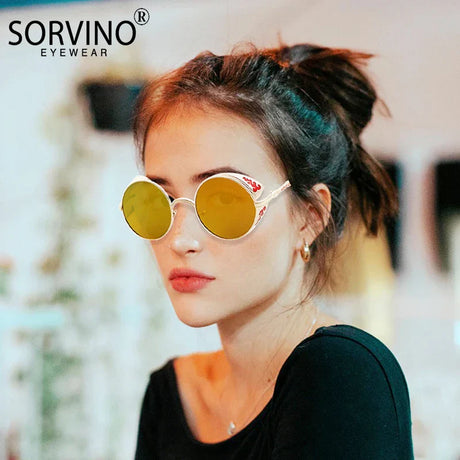 SORVINO Round Steampunk Polarized Sunglasses Women Brand Designer