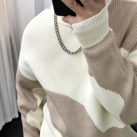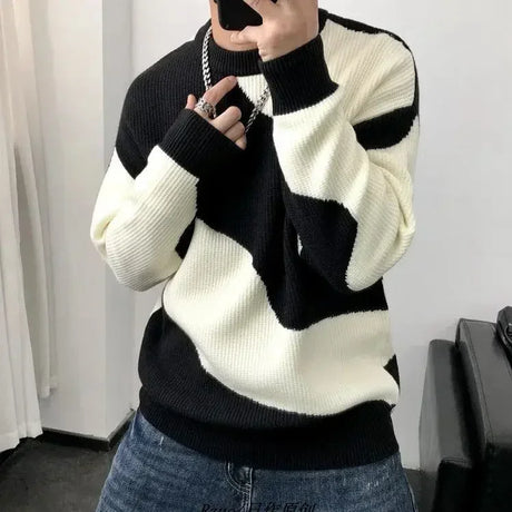 Knitted Sweaters for Men Black Spliced Pullovers Man
