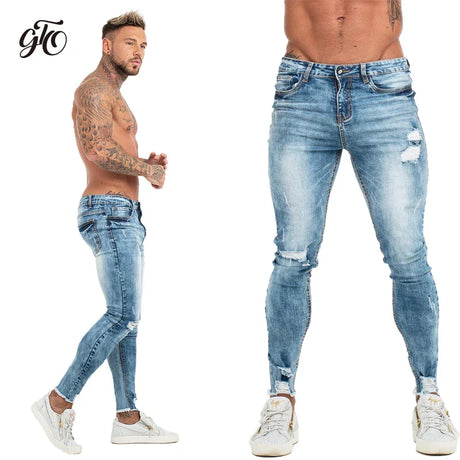 GINGTTO Jeans Men Elastic Waist Skinny Jeans Men