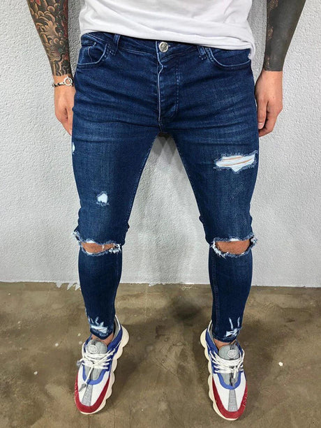 Fashion Street Style Ripped Skinny Jeans Men Vintage