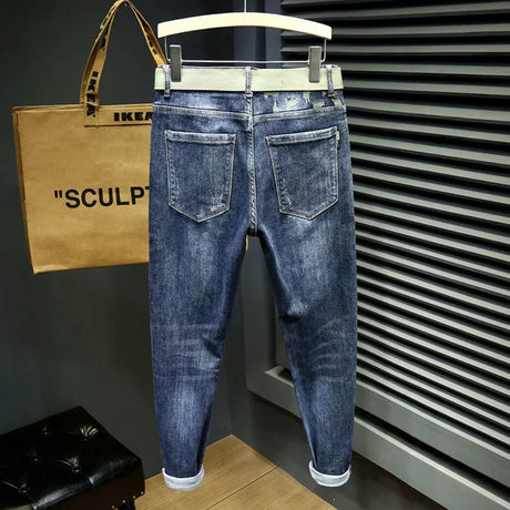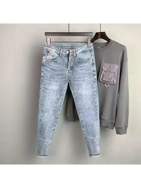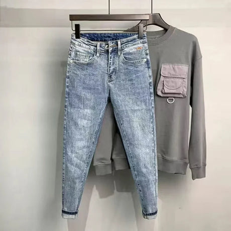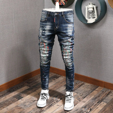 Fashion Designer Men Jeans Retro Stretch Slim Fit