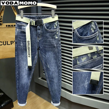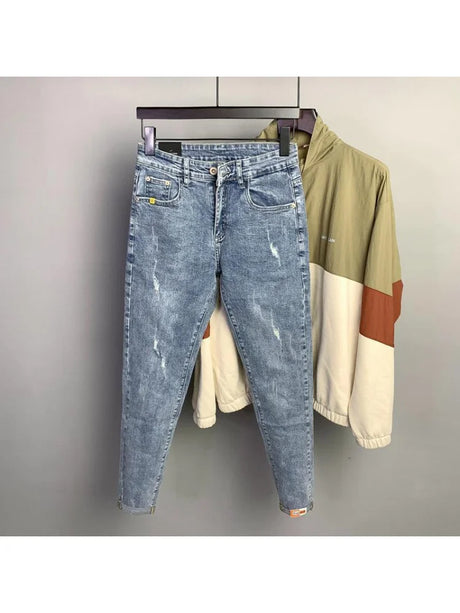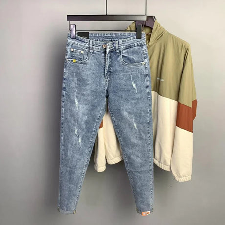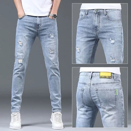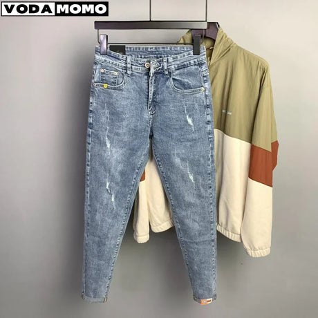 2024 New Ripped Skinny Jeans Men Vintage Wash