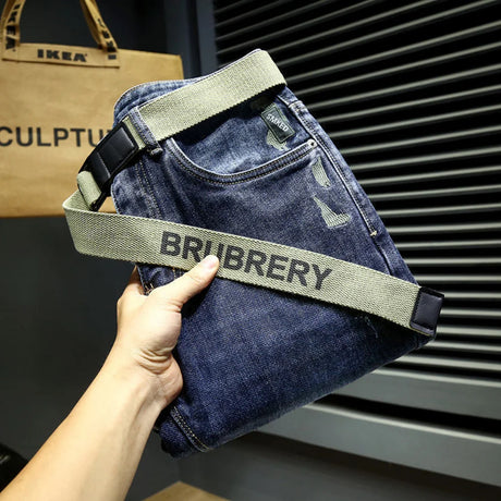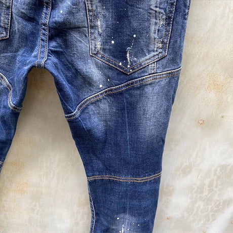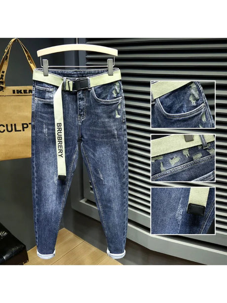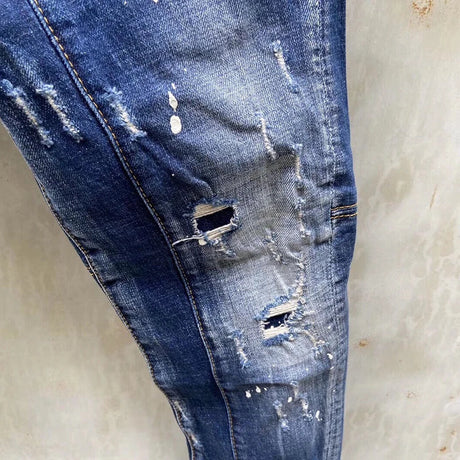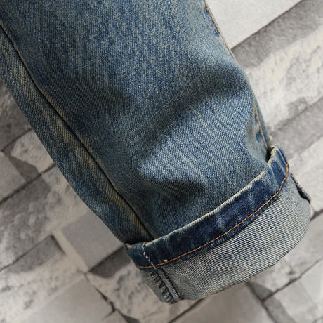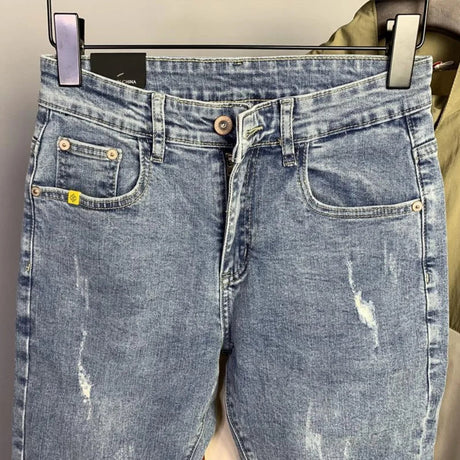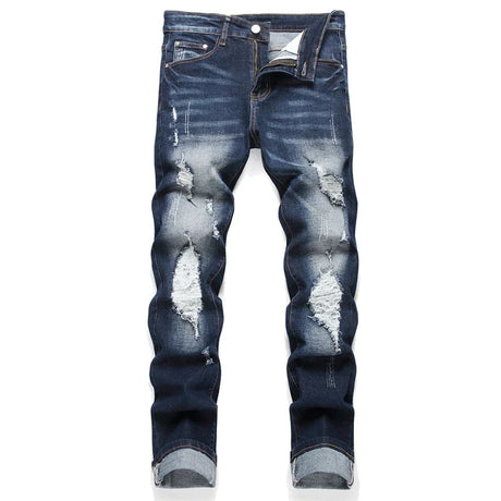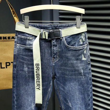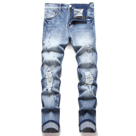 Distressed Ripped Jeans Men's Retro Blue Fashion Slim