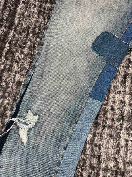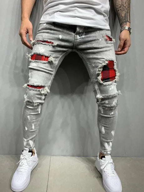 Distress Plaid Patch Holes Streetwear Ripped Skinny Jeans