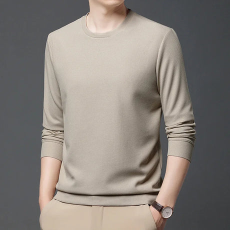 Autumn Men's Sweater Pullover Solid Color Round Neck