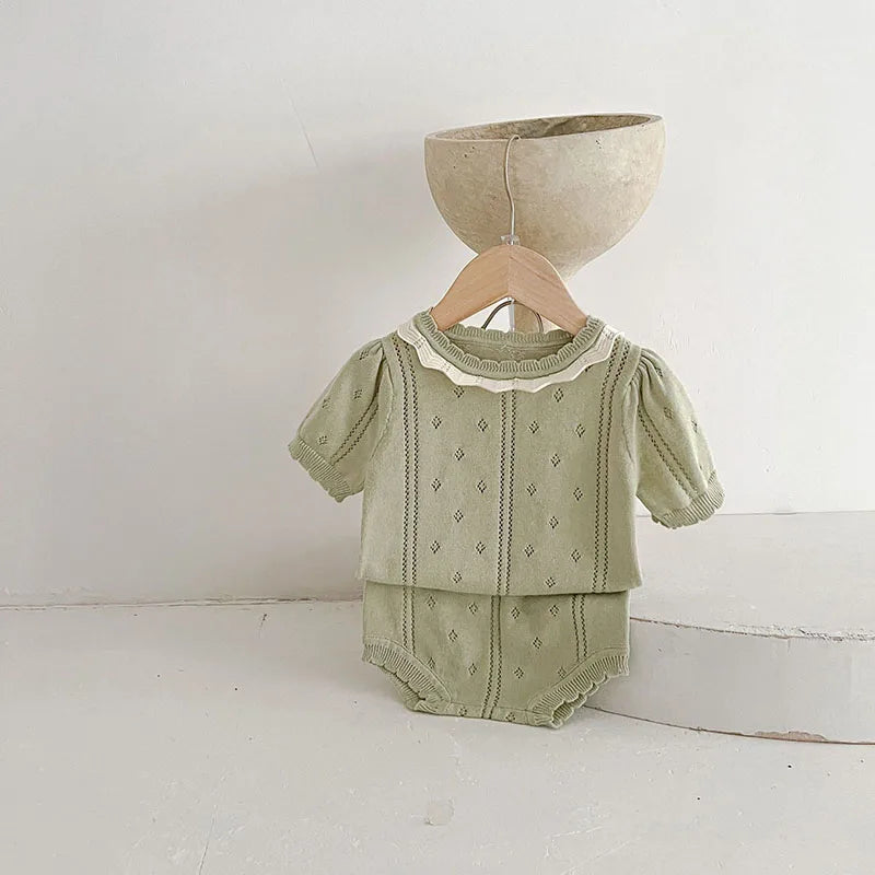 Summer Baby Clothing Set Hollow Out Knit Tee