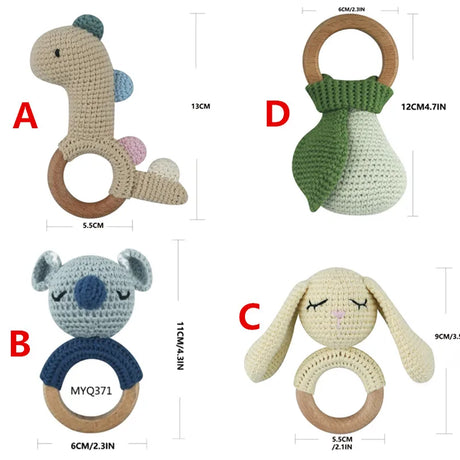 1 Pc Baby Wooden Rattle Toy Crochet Animal