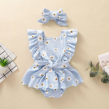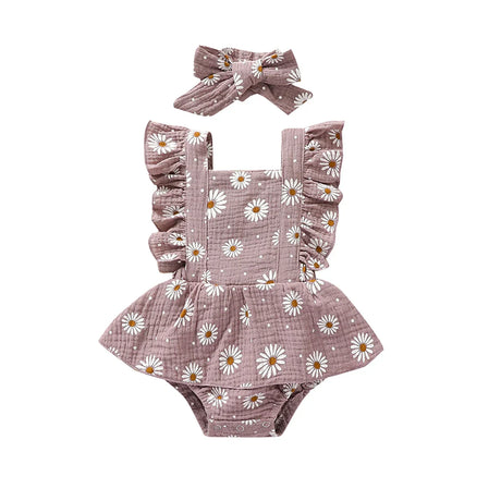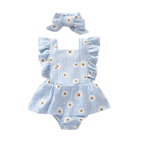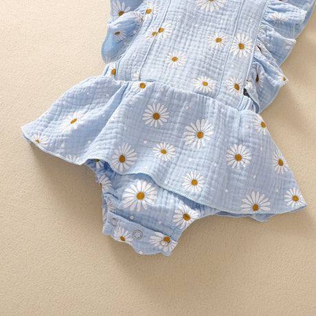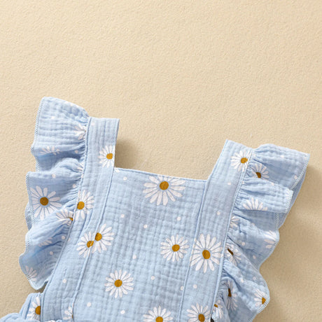 0-18M Newborn Girls Floral Jumpsuits Cotton Sleeveless Ruffles