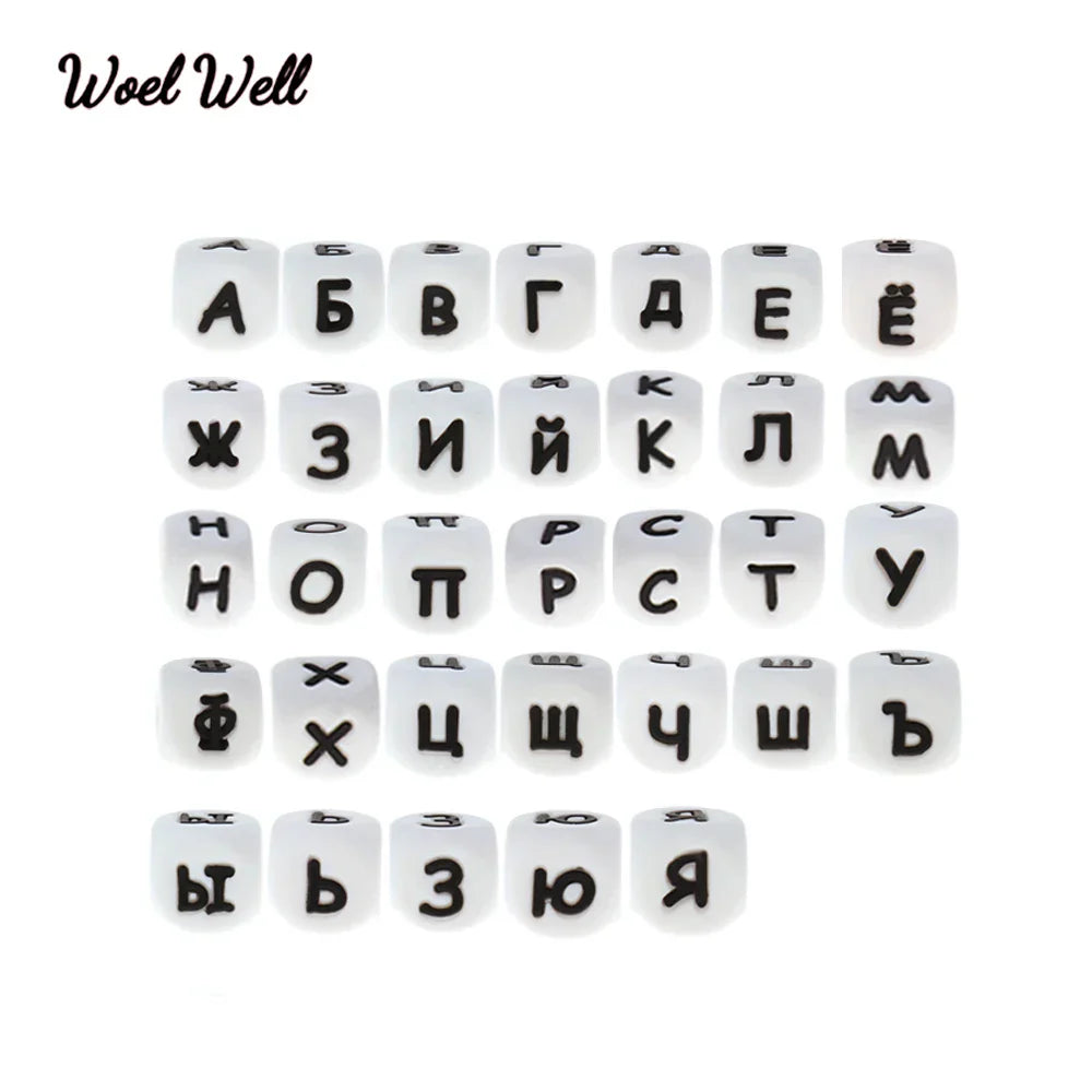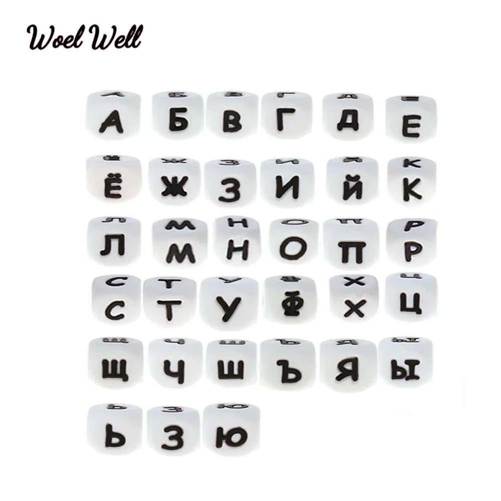100Pcs Russian Letter Silicone Beads Baby Teether Beads
