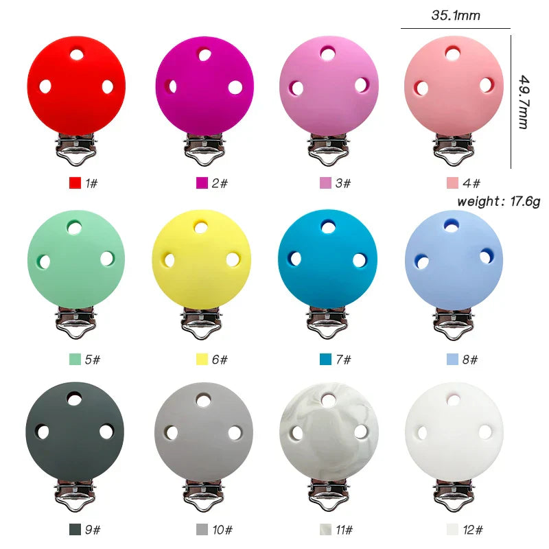 10pcs Round Silicone Pacifier Clips Solid No-Rusty Silicon - 10pcs mix / VIP Price is backordered and will ship as soon as it is back in stock.