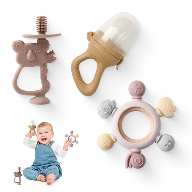 1Set Baby Silicone Koala Training Toothbrush Wooden Ring