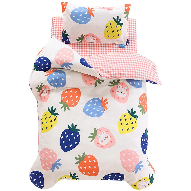 3Pcs Cartoon Cotton Crib Bed Linen Kit Baby