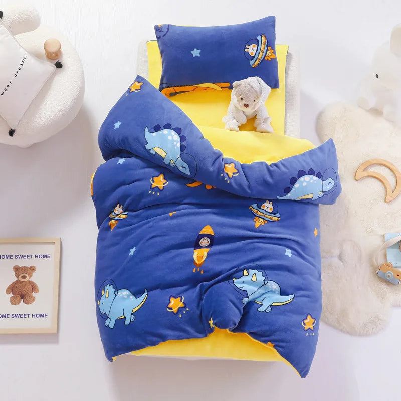 3pcs Cartoon Cotton Crib Linen Kit Baby Coral