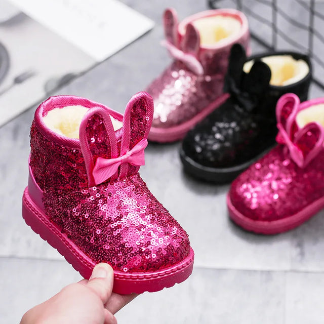 ботинки для девочки Girl Boot Winter Fashion Sequin Snow Boot Non-slip Warm kid Shoe Plush Cotton Shoe Kids Princess Ankle Boots - rose / 30-insole18cm / VIP Price is backordered and will ship as soon as it is back in stock.
