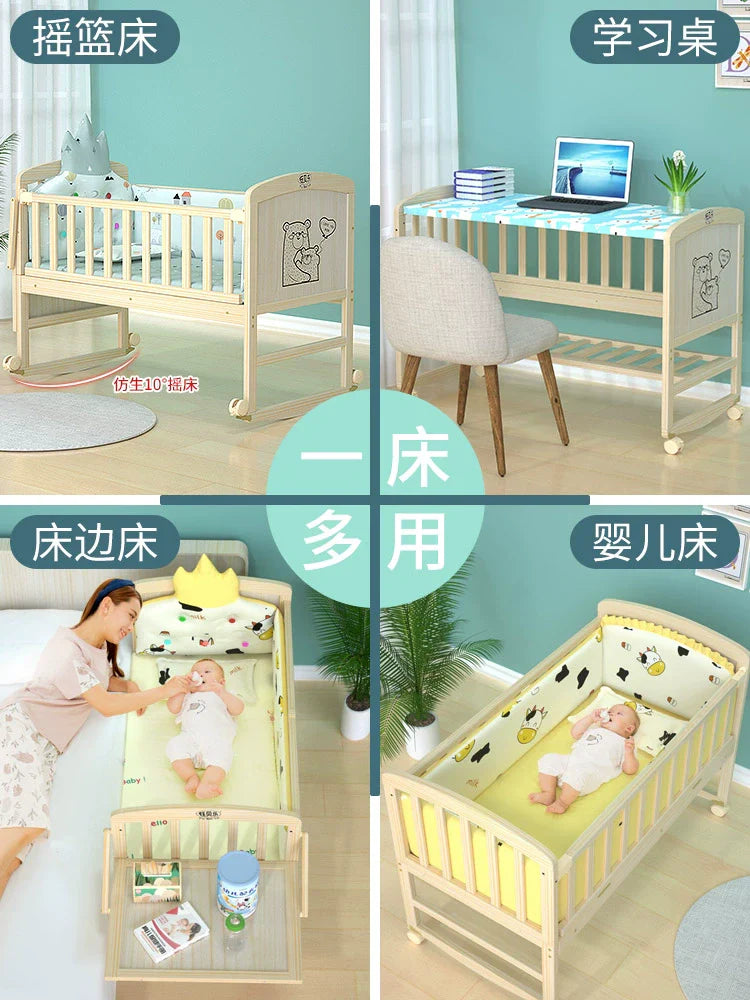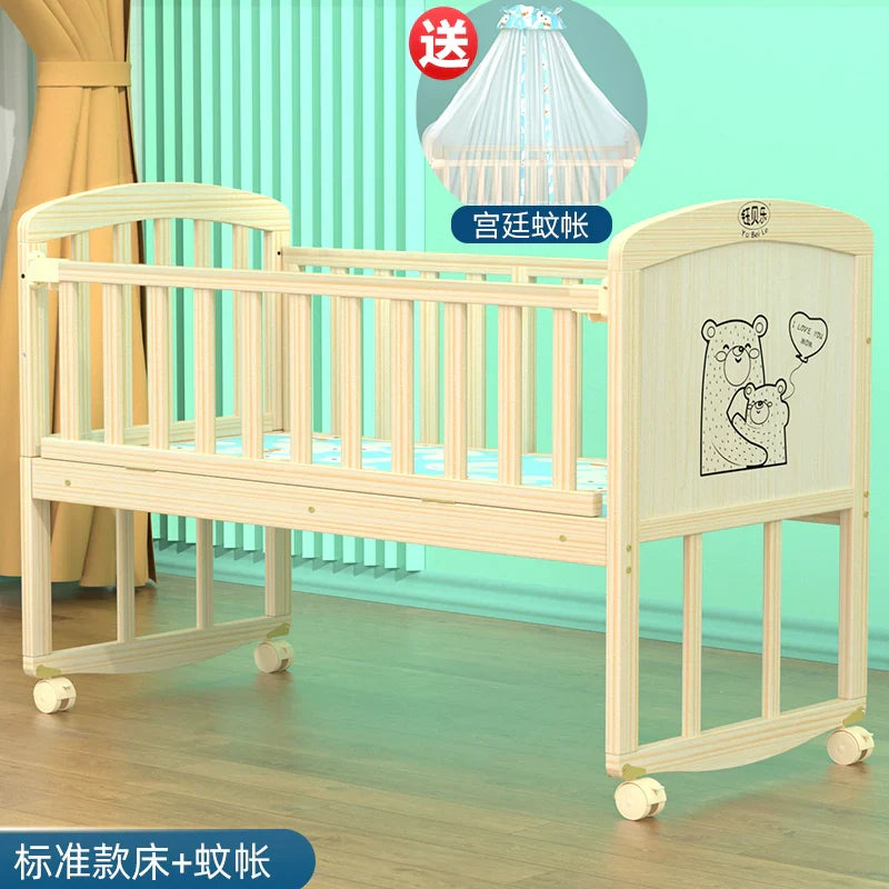 Yubele Crib Solid Wood Unpainted Babies' Bed Children's