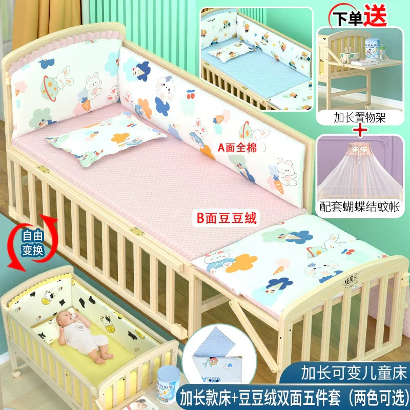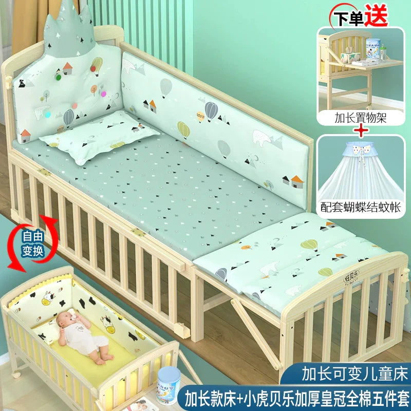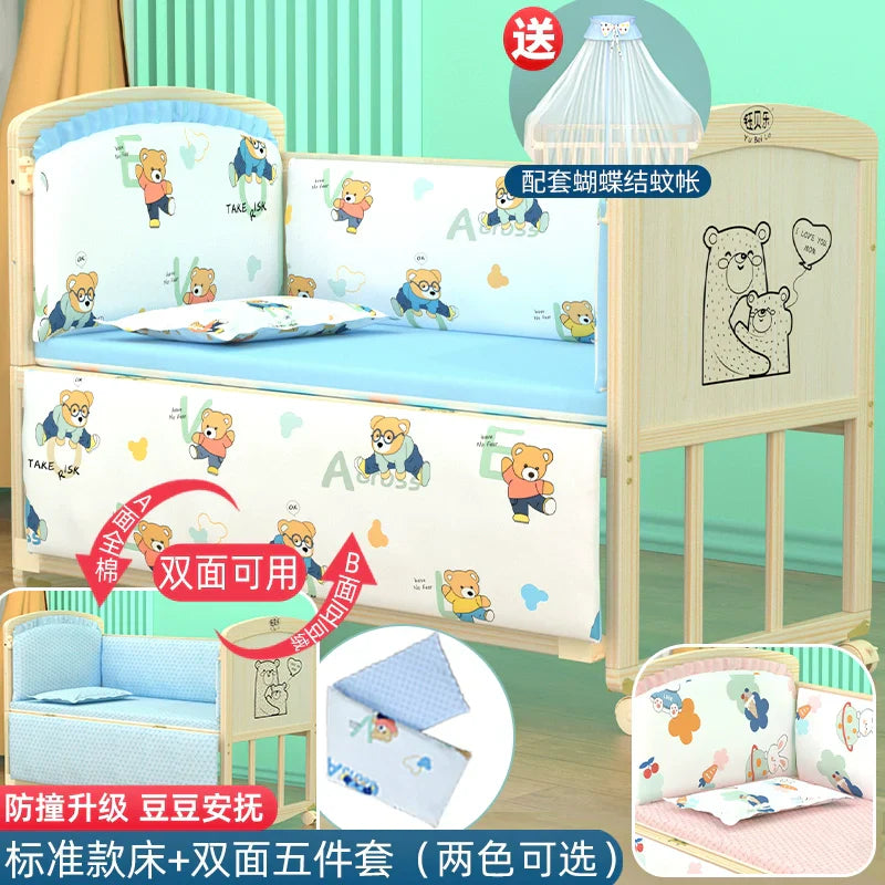 • Assembly | Lined bed + cow milk Crown thickened five-piece set (send mosquito net nursing table)