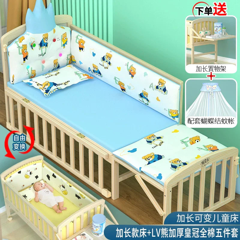 • Assembly | Lined big bed + LV bear Crown thickened five-piece set (send mosquito net nursing table)