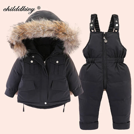 2pcs Set Children Winter Down Jacket and Jumpsuit