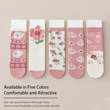 5 Pairs /lot Cute Baby Girls Socks Spring