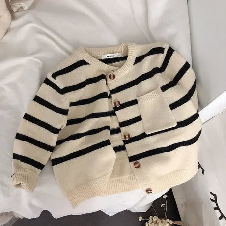 Children's Soft Waxy Striped Sweater Cardigan For Boys