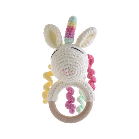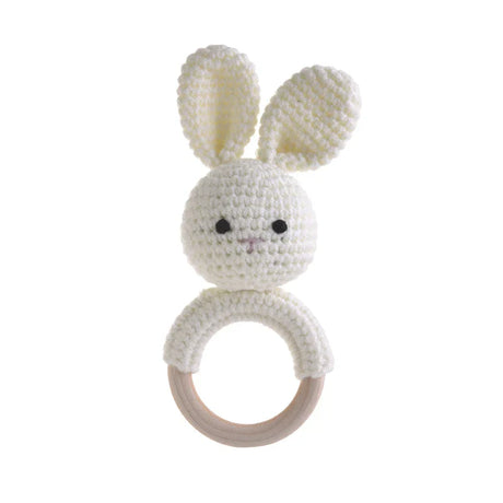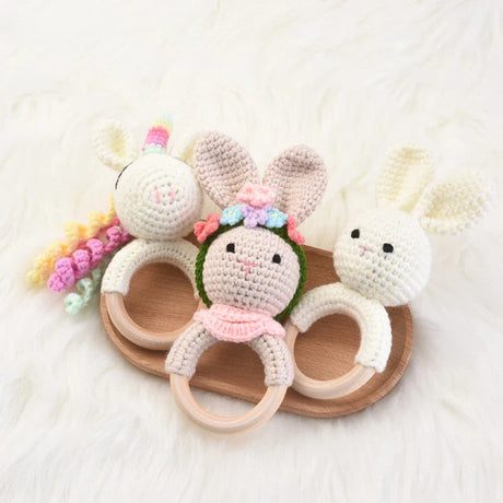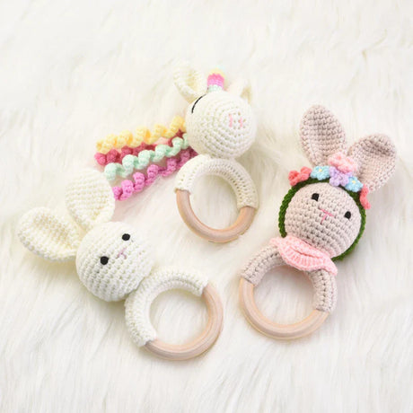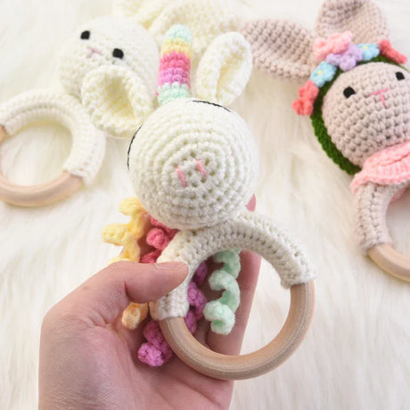 1Pcs Crochet Animal Rabbit Rattle Toy Baby Wooden