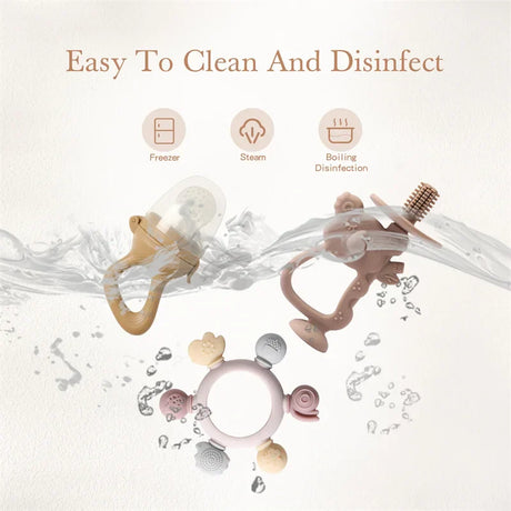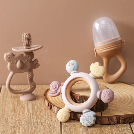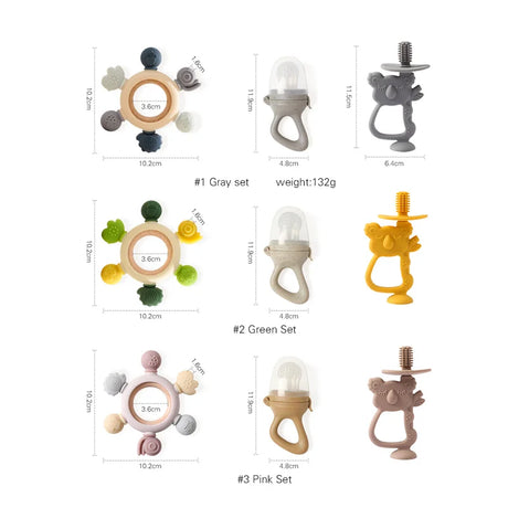 1Set Baby Silicone Koala Training Toothbrush Wooden Ring