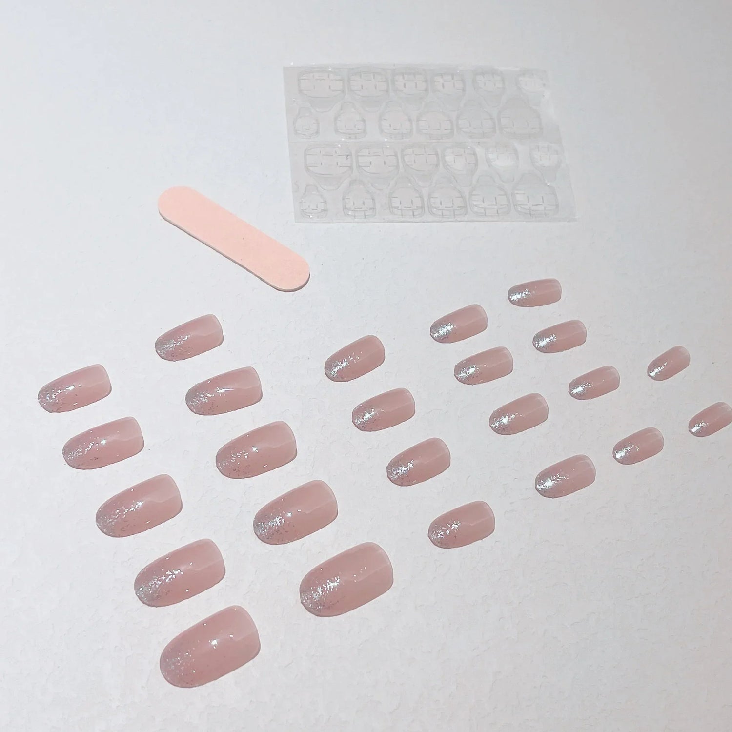 Glitter Pink Fake Nails Press on Short French