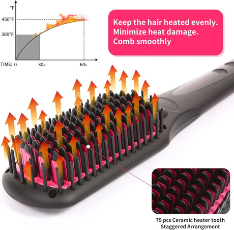 Negative ion Hair Straightener Brush, Anti-Scald Portable hot
